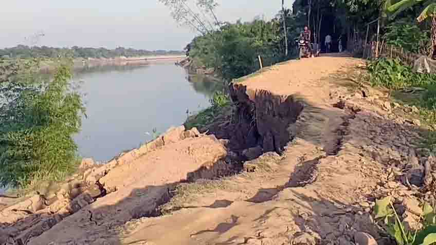 A serious crisis has unfolded in the Dakshin Buribail area within the Borkhola Assembly constituency of Cachar district, where aggressive erosion by the Barak River is threatening the lives and livelihoods of over three hundred families. Large sections of the only connecting road for this vast locality have been swallowed by the river’s relentless current, forcing residents to traverse dangerous, eroded pathways at great personal risk.