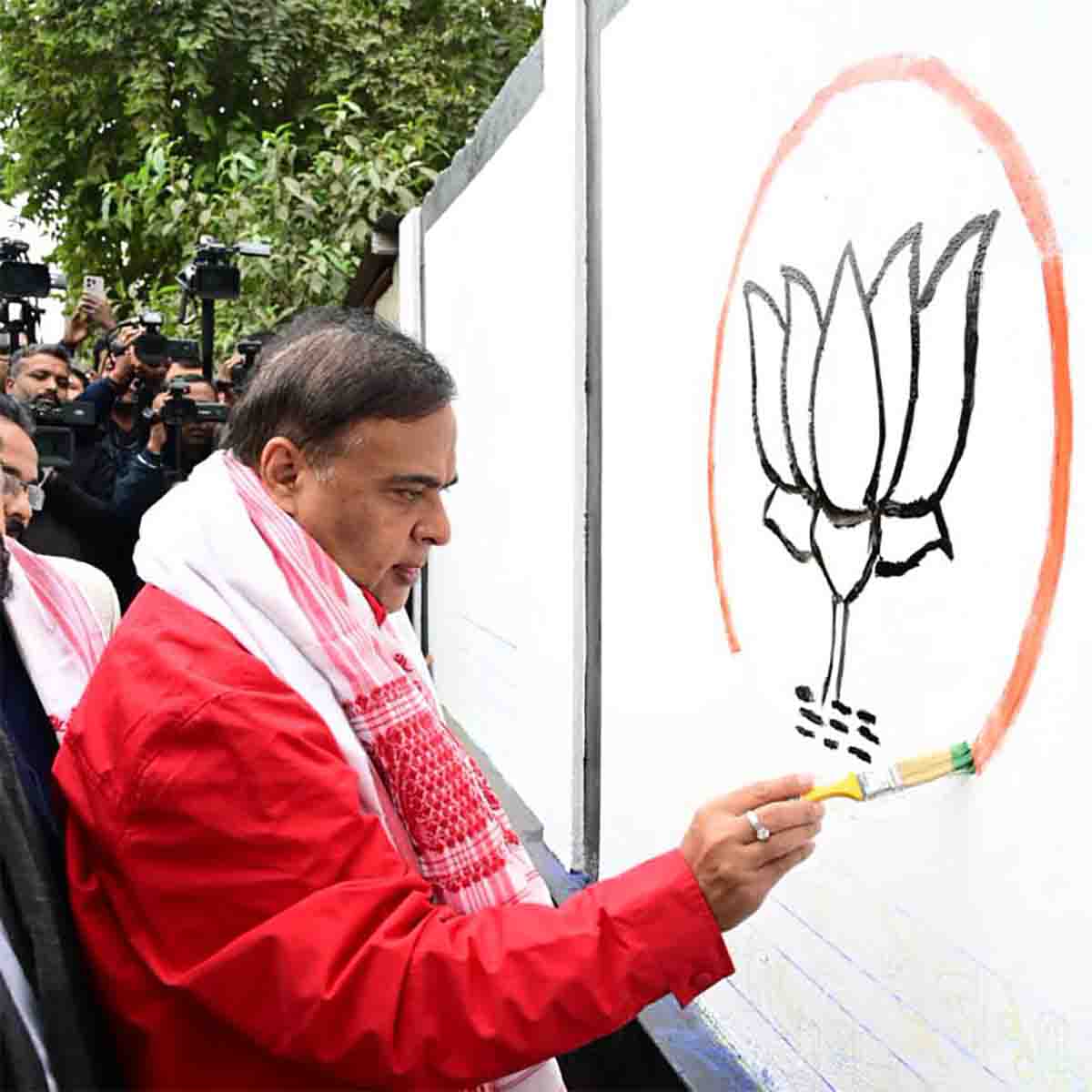 The Chief Minister initiated the drive at Khanapara Kendriya Vidyalaya, where he personally painted the party’s lotus symbol. The campaign aims to cover every district in the state within a strict timeframe, focusing on a direct-to-voter messaging strategy.