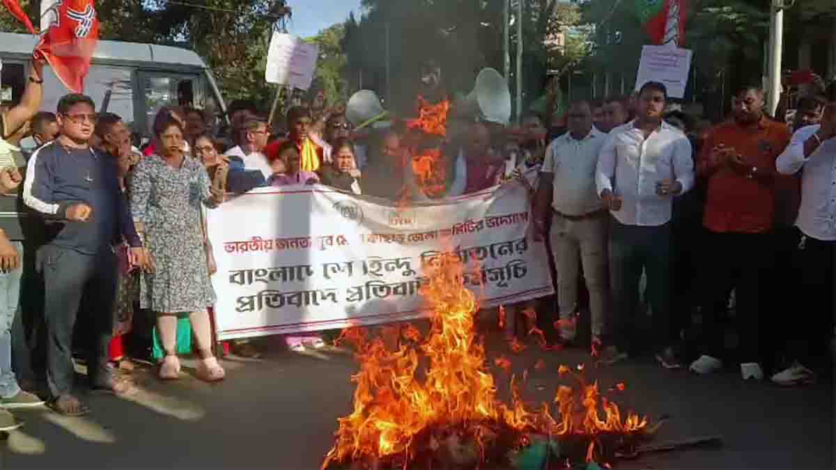 BJYM Burns Yunus Effigy Over Dipu Das Murder in Bangladesh