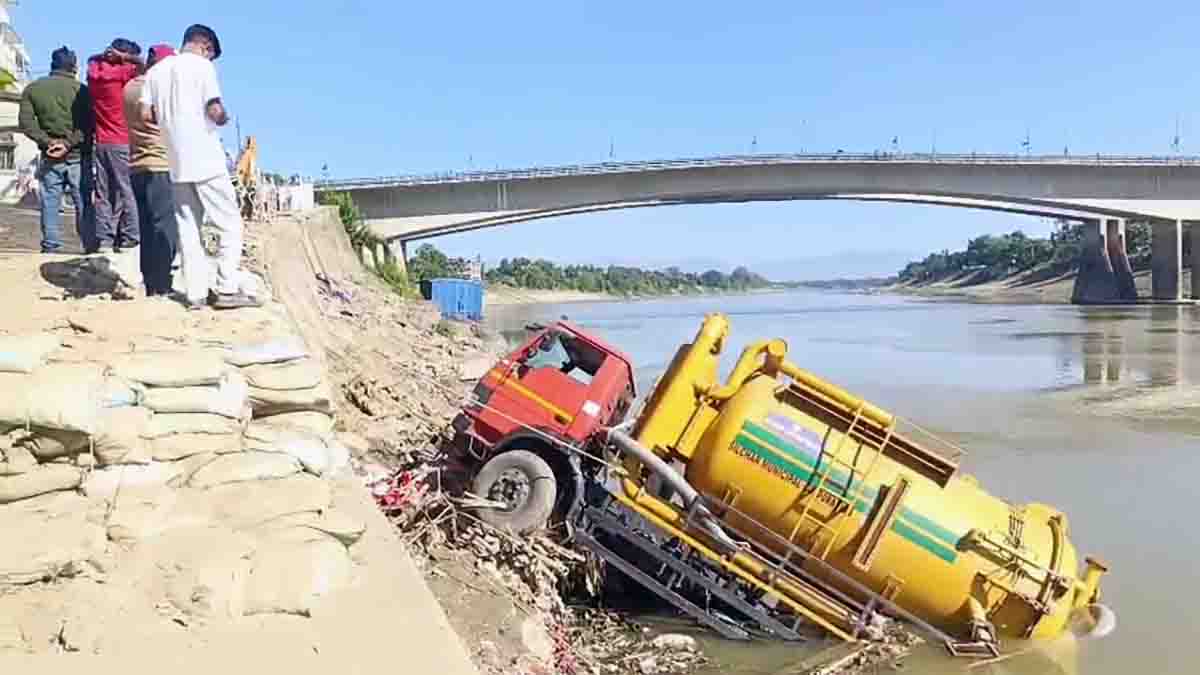 A massive accident shook the Sadarghat area of Silchar this morning when a heavy vehicle belonging to the Silchar Municipal Corporation (SMC) lost control and plunged straight into the Barak River. The vehicle, identified as a ‘Super Sucker’ truck, was registered under the number AS-11/EC-8898.